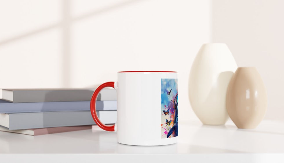 Sip in style with every cup – This 11oz (330ml) mug brings your favorite beverages to life with bold, eye-catching designs that make every sip a moment to enjoy. Whether you're winding down or gearing up for the day, express your personality with artwork that stands out. Perfect for coffee, tea, or any drink that fuels your vibe. This beautiful ceramic mug is perfect for any moment of the day. The mug is glossy white with a colored rim, inside, and handle. The prints come out beautifully and vividly on it. The print retains its quality and luster when used in both microwaves and the dishwasher.